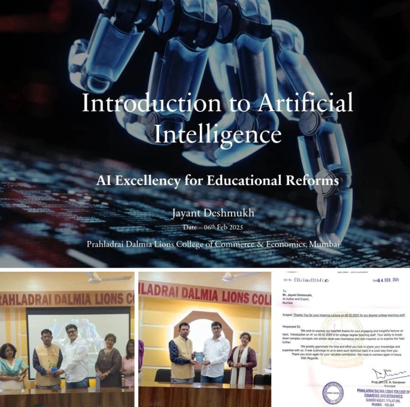hashtag#AIinEducation hashtag#EdTech hashtag#ArtificialIntelligence hashtag#EducationalReforms hashtag#FutureOfLearning hashtag#AIExcellency hashtag#PromptEngineering hashtag#PrahladraiDalmiaCollege hashtag#JayantDeshmukh hashtag#GuestLectureonAI
